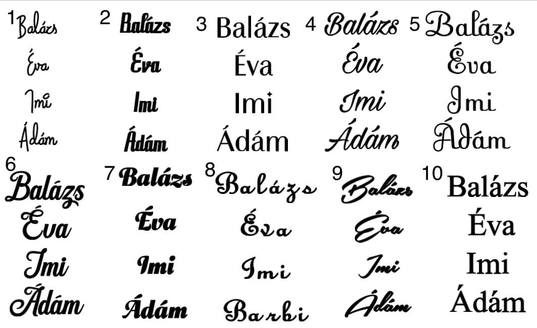 30 darabig a neveket megtudod írni megjegyzésbe vagy e-mailbe tudod elküldeni. 30 darab felett mindenképp e-mailben küld el a neveket.