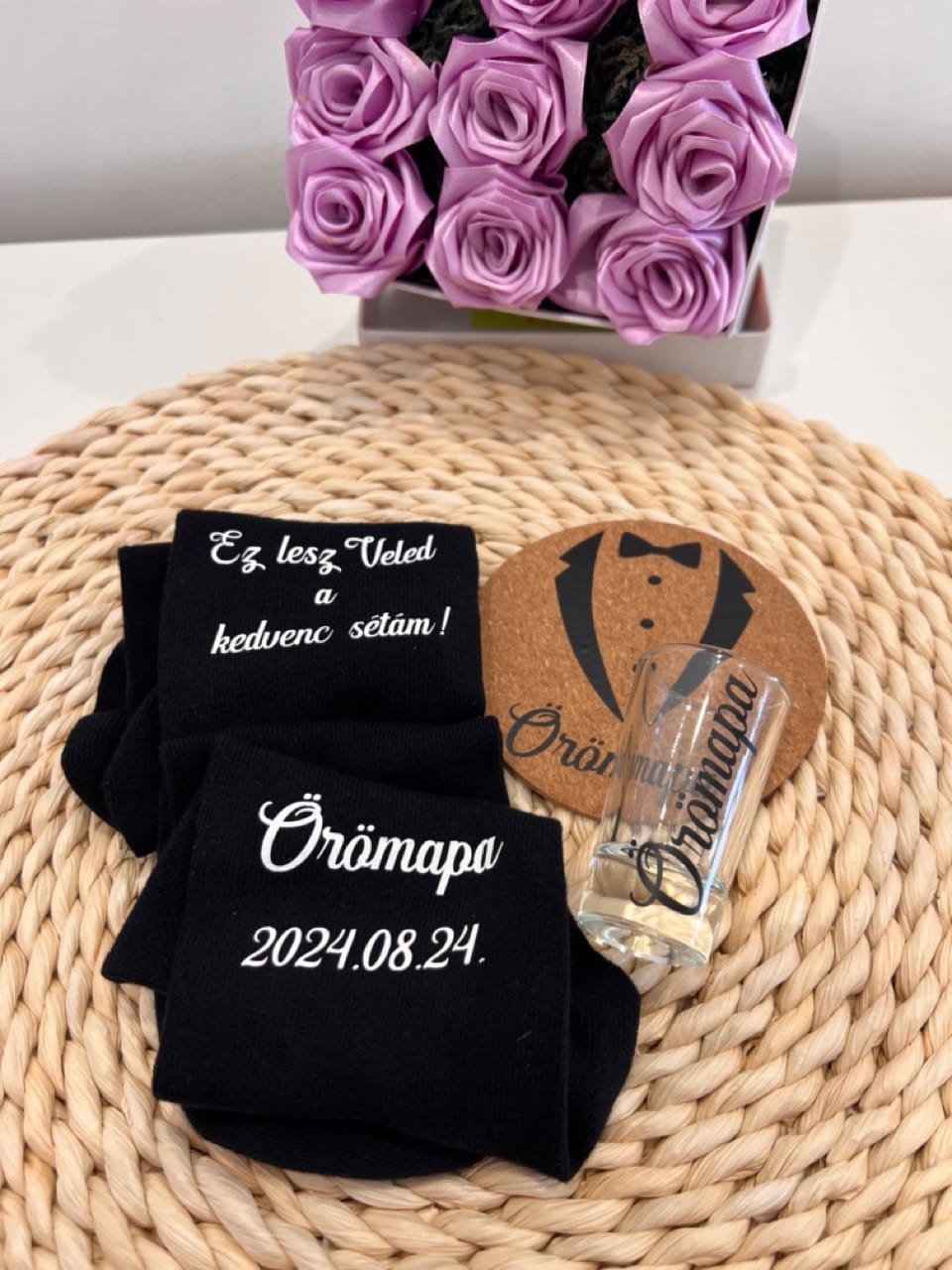 A zoknikra kérhető plusz felirat (dátum) – rendelés leadásánál kérlek írd meg a dátumot megjegyzésbe. A dátum az “Örömapa” felirat alá kerül.