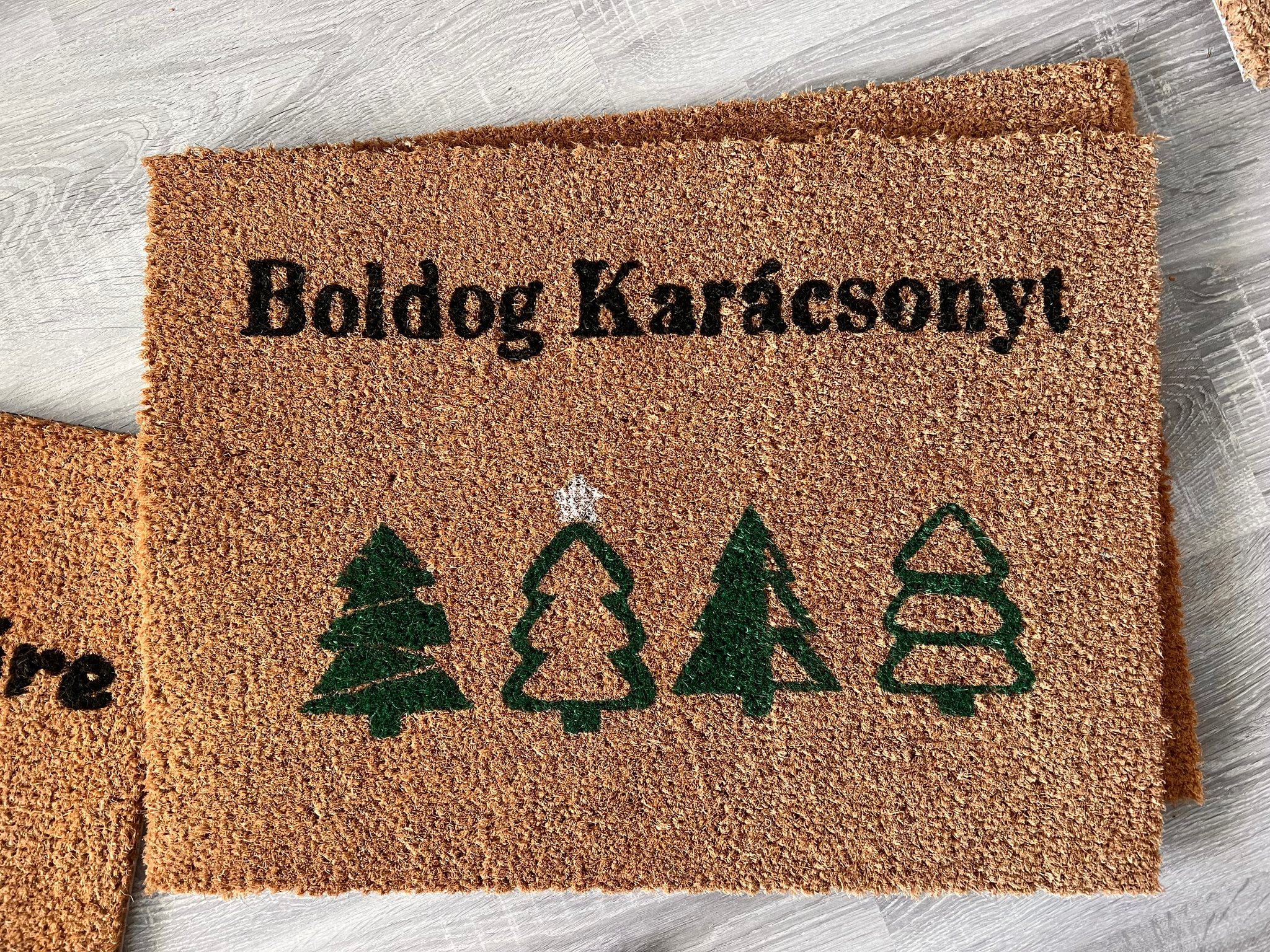 Egyedi kézzel festett lábtörlő, karácsonyi felirattal..