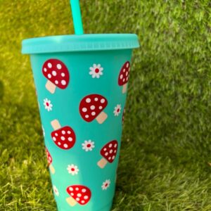 Szívószálas pohár gombás mintával