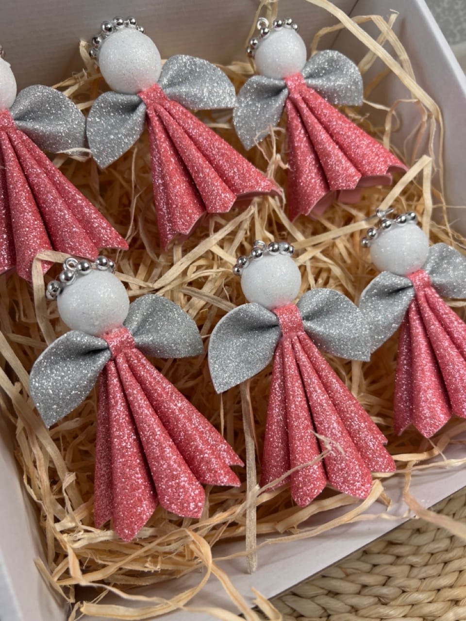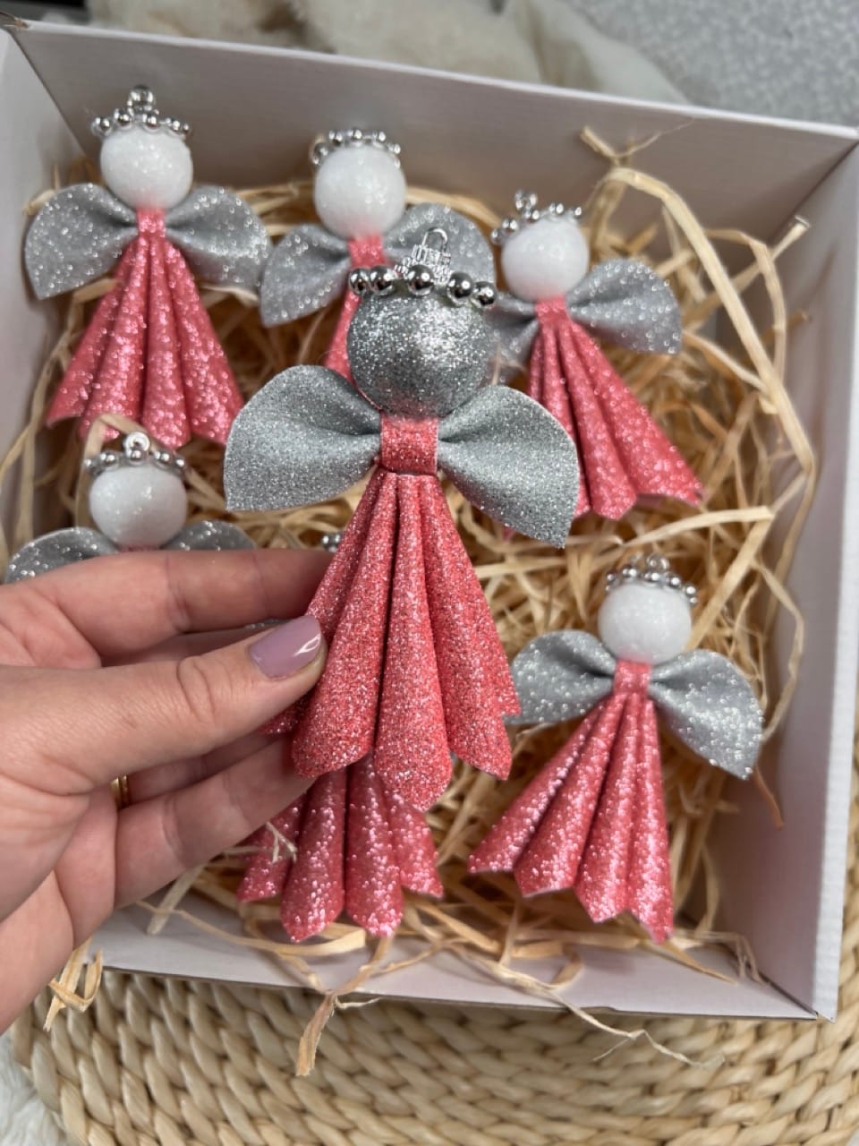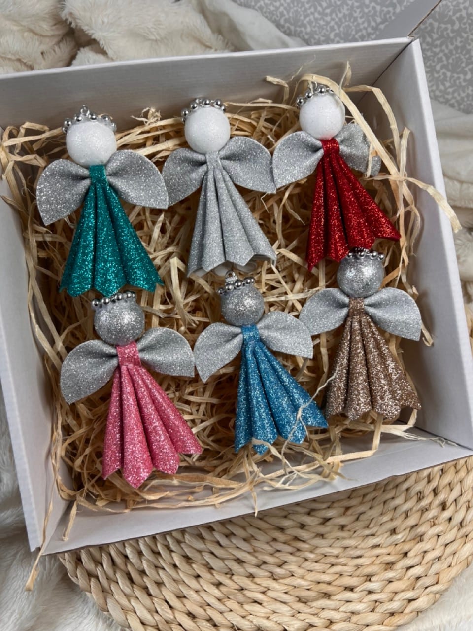 Az angyalok szárnyai és fejük fehér és ezüst színekkel készülnek, ezek vegyesen kerülhetnek bele a csomagba. Ha nem szeretnéd, hogy vegyesen kerüljenek bele, akkor azt jelezd megjegyzésbe.