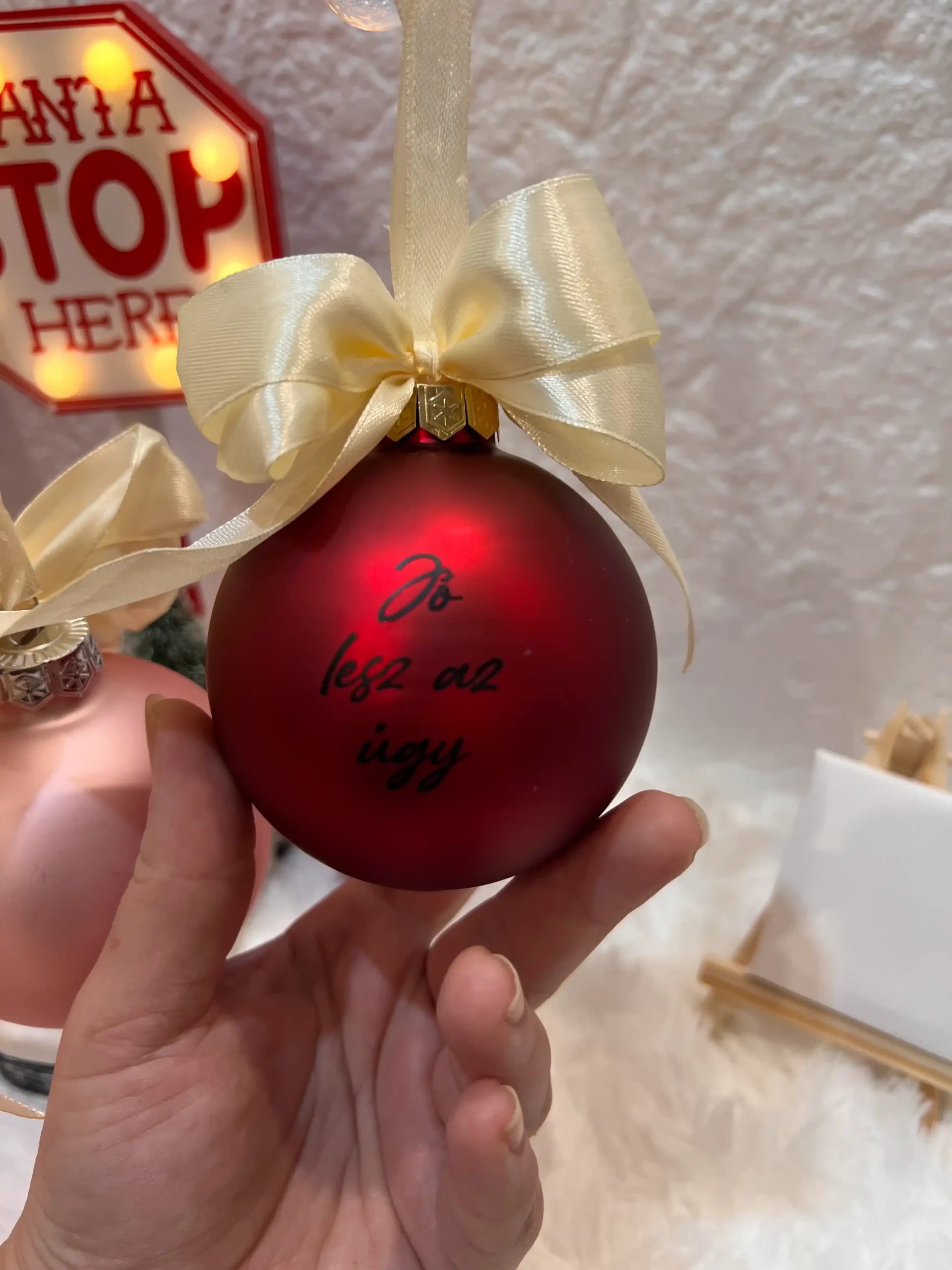 Egyedi, Vicces Feliratos Üveg Karácsonyfagömb – 8 cm