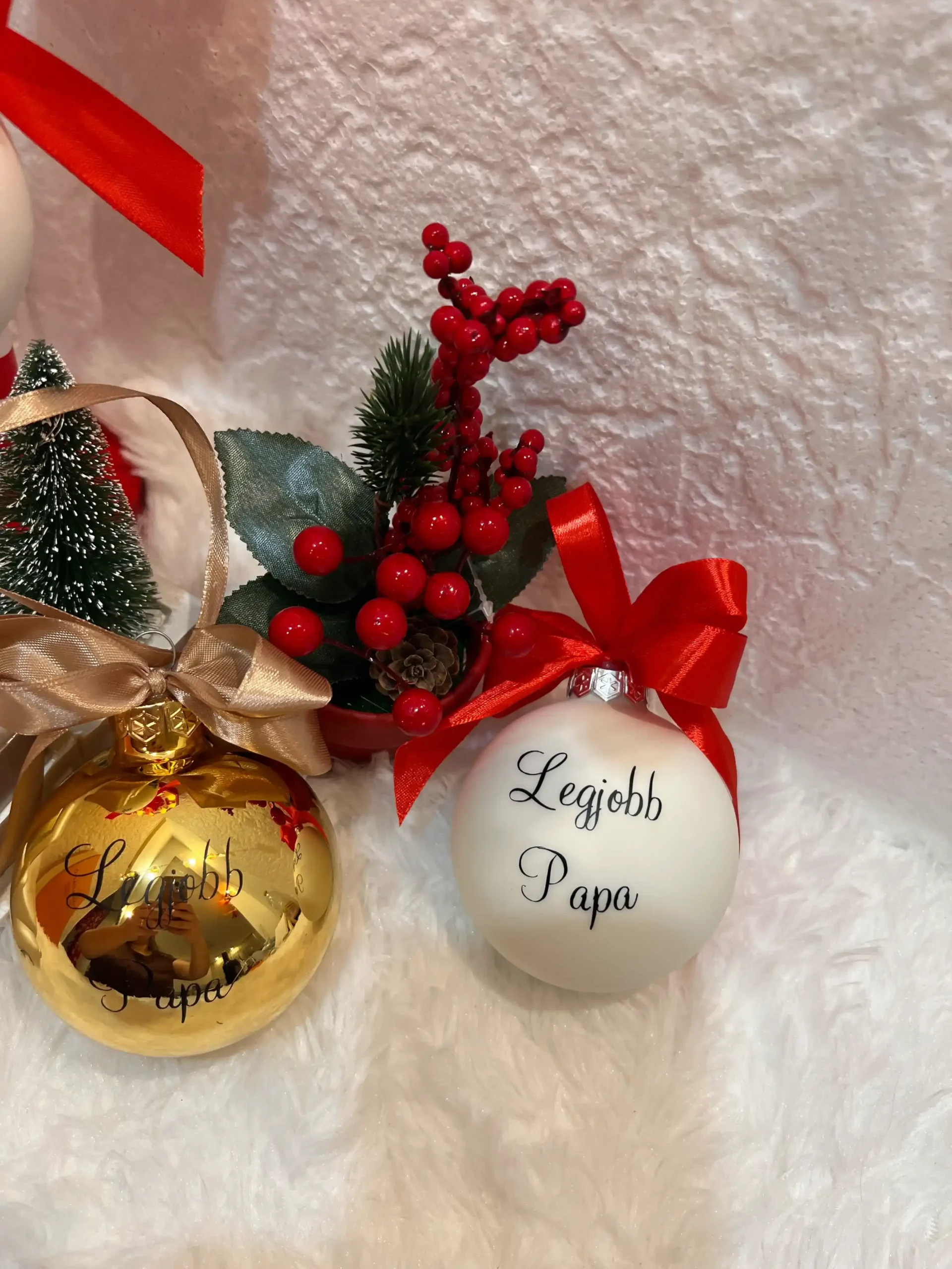 Tedd a karácsonyfát idén még meghittebbé! Rendeld meg a „Legjobb Papa” vagy „Legjobb Mama” üveg karácsonyfagömböt még ma, és ajándékozz örömöt!