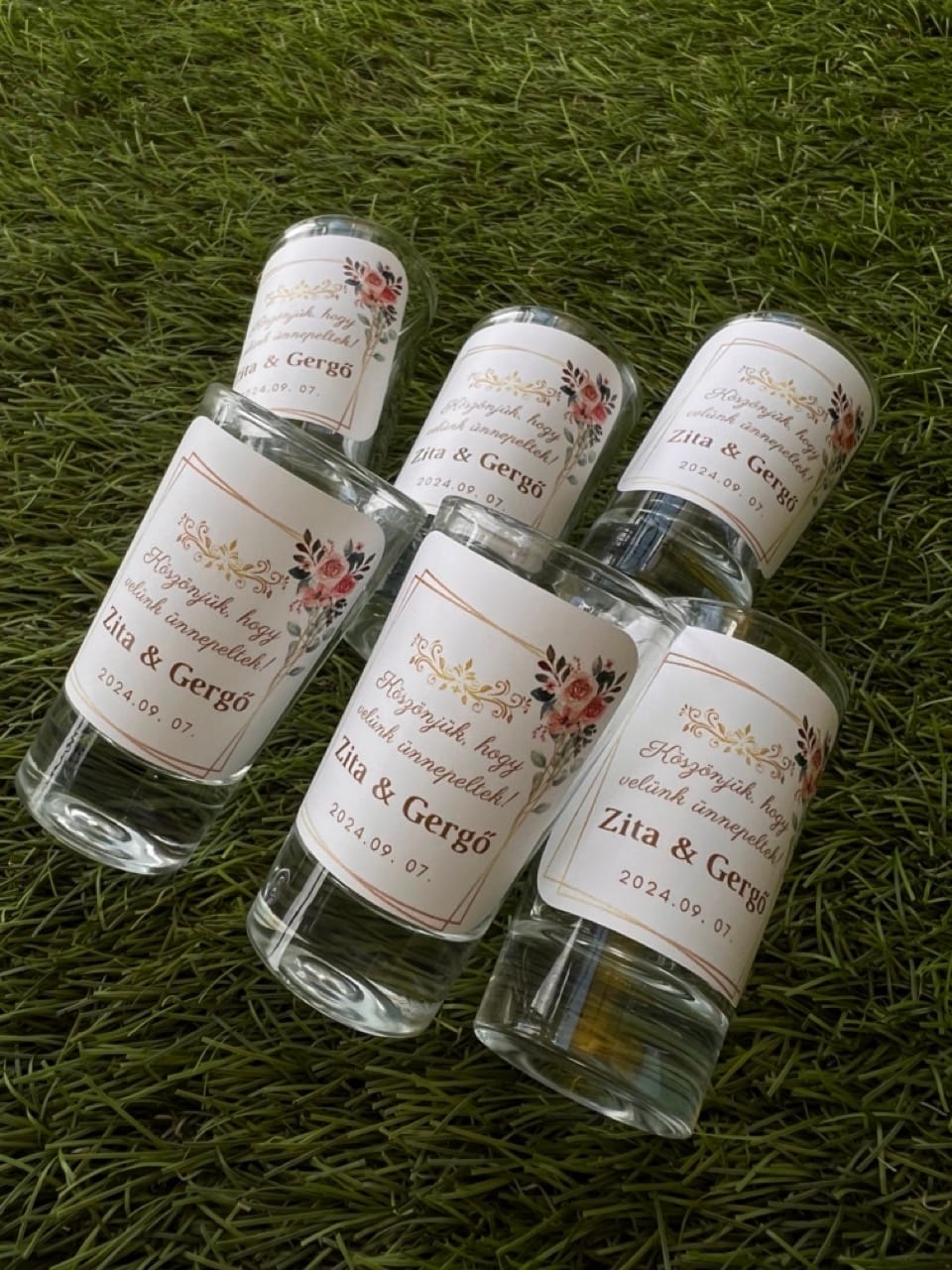 2,5 cl es neves pálinkás pohár amit a vendégek haza tudnak vinni emlékbe.