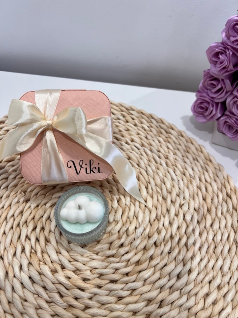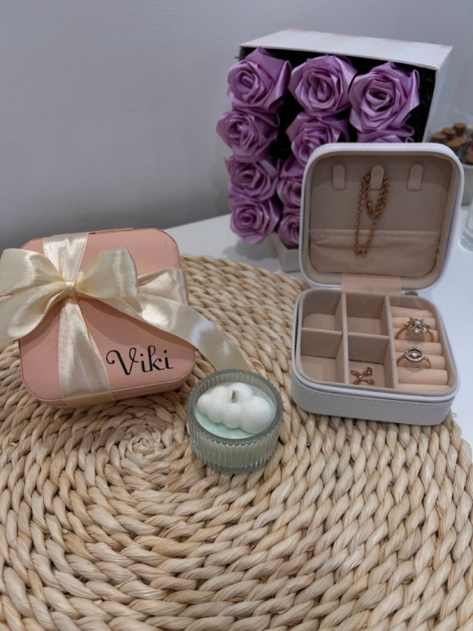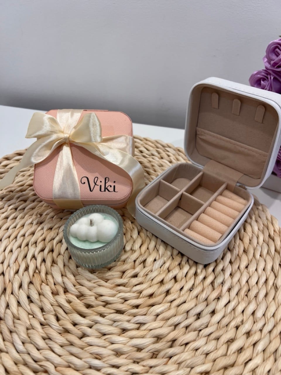 Az ár tartalmazza:Névre szóló ékszertartó masnival átkötveIllatos szójaviasz gyertya (kókusz illat)
