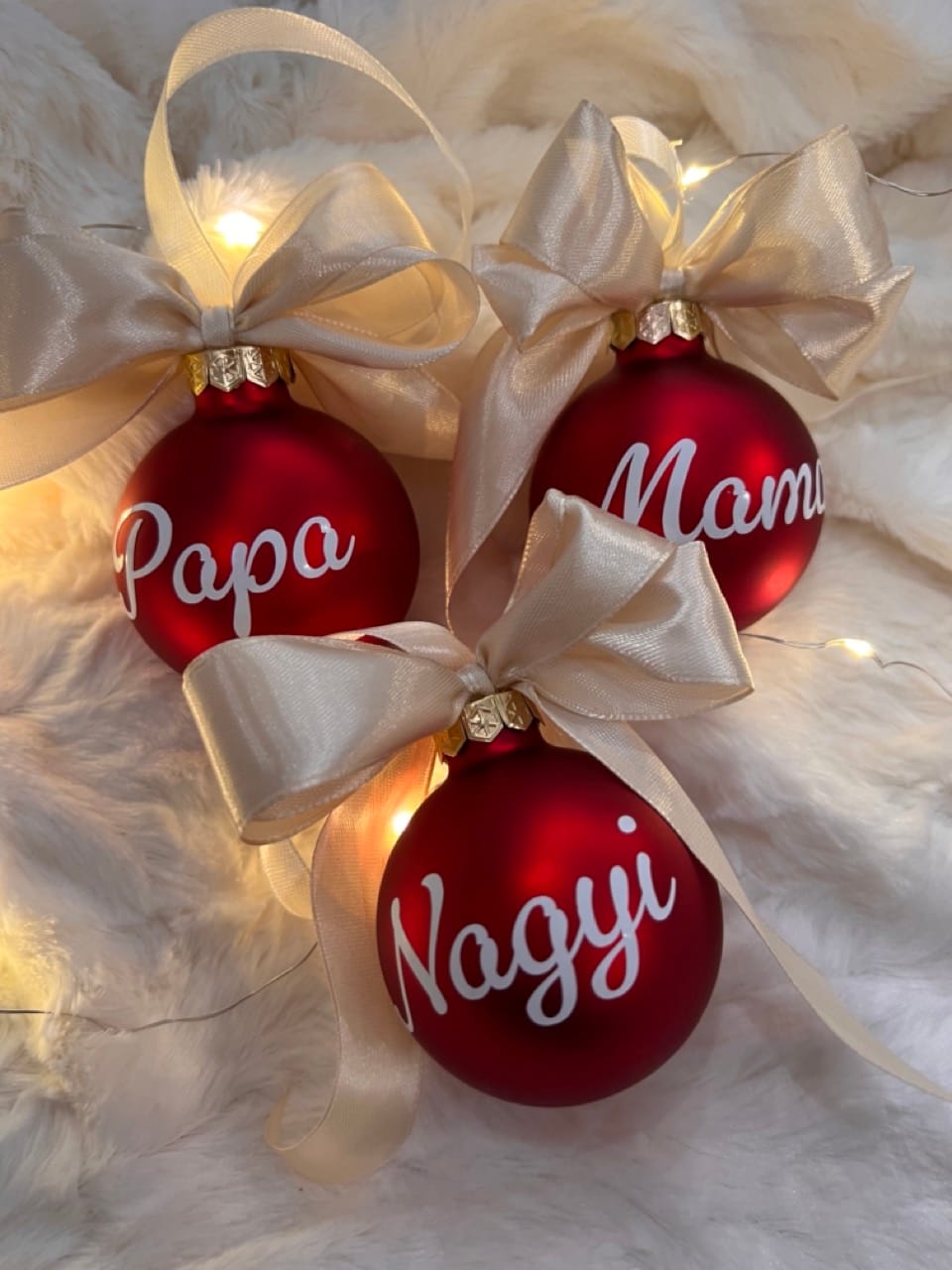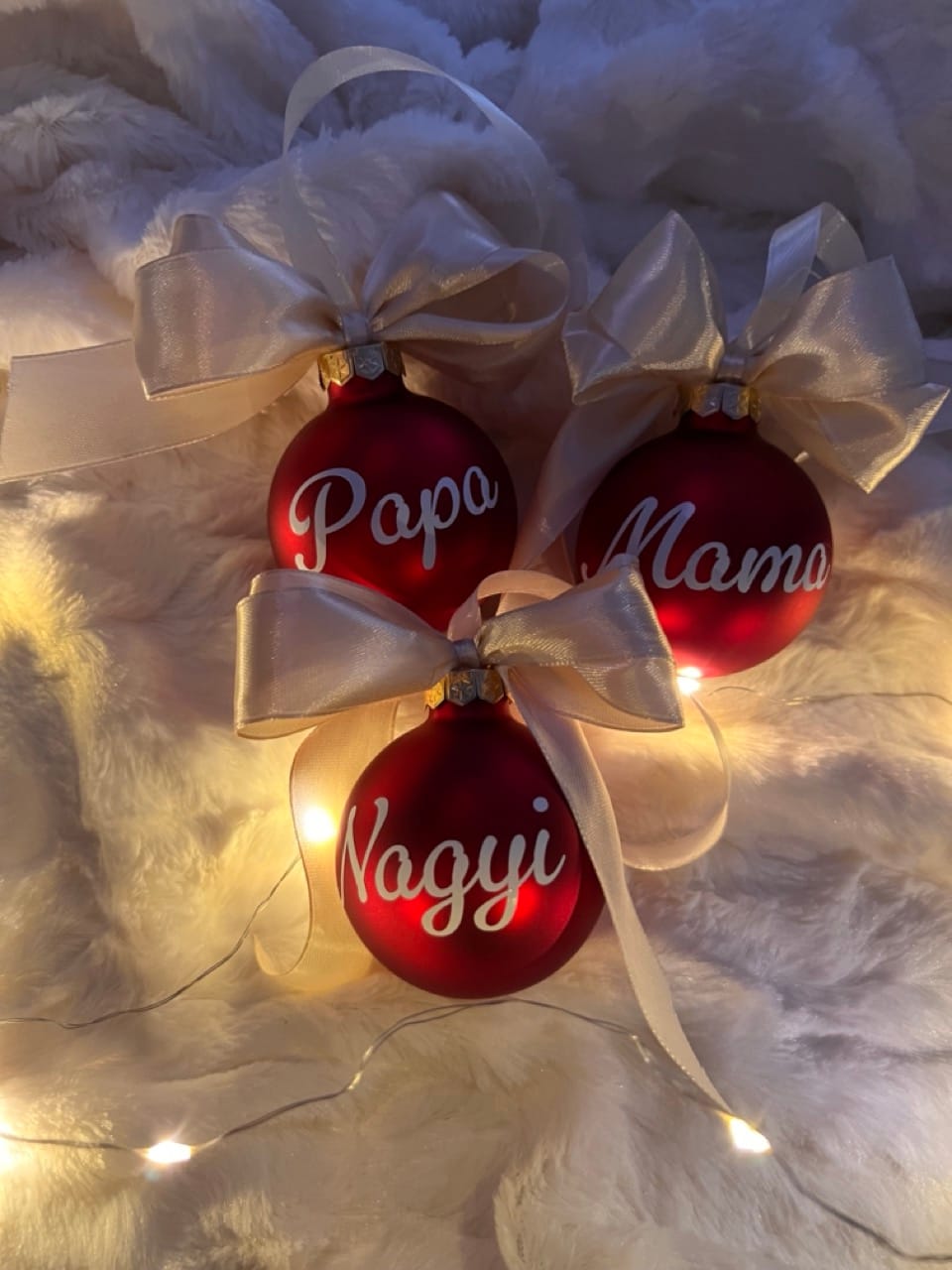 Egyedi, Vicces Feliratos Üveg Karácsonyfagömb – 8 cm