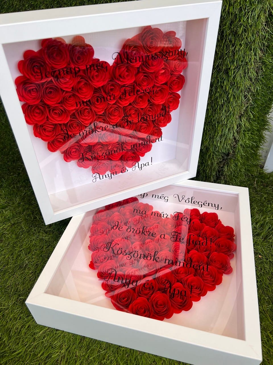 – Tegnap még Menyasszony, ma már Feleség, de örökre, a Ti lányotok! Köszönök mindent Anya és Apa! (virágbox1)